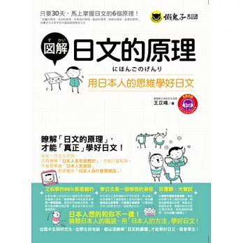 針對中日文的不同進行解說,透過中文和日文的互相比較,打破舊有的學習窠臼,推倒阻礙學習的圍牆,讓每一位學習者都能夠換一顆日本人的腦袋。而每個原理都搭配圖解,利用圖像使記憶更深刻。