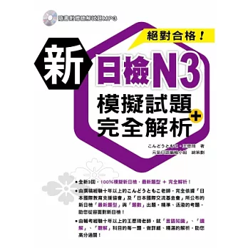 2010年起,日檢大幅改革,N3分為三節考試三科計分,第一節考「言語知識(文字.語彙)」,第二節考「言語知識(文法).讀解」,第三節考「聽解」。坊間舊的模擬考題已不再適用,唯有本書才能忠實呈現試題原貌,讓您在正式考試前透過本書自我測驗、厚植實力,加強臨場經驗、增加解題速度和功力,進而獲取高分。