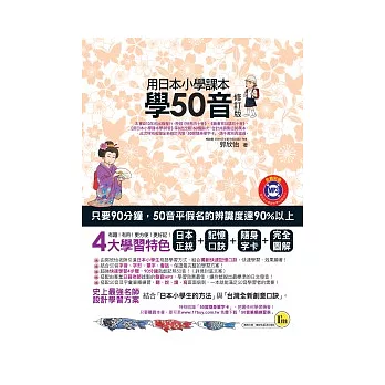 本書針對100名從未學過50音的學生做測驗,經過「快速學習4步驟」後馬上做測驗,學生對50音平假名辨識度高達90%以上!輕鬆、簡單的4個步驟便能達到正確且完整的50音學習成果。