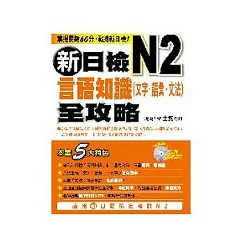 1.專為新日檢「言語知識」科目量身訂製:因應新日檢N2「言語知識」科目新形式,分別就文字、語彙、文法三大項目,做最完整的整理與分析,不僅適用於平日準備,也能當成考前衝刺秘笈!