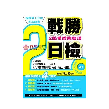 ○這是一本「讀完=考上」的檢定書!○這是一本日檢考前一個月必讀的書!○「日語補教業名師」林士鈞老師親上火線執筆○政治大學外語學院于乃明院長、日文系吉田妙子副教授強力推薦,保證考上!1.短時間內迅速掌握考題趨勢,學習最有效率!2.分科解析 + 重點提示,詳細統整與分析,立即提升戰鬥力!3.一網打盡日語檢定必考重點,是您必備的考前衝刺秘笈!4.適用日語檢定考試二級(2010年檢定新制N2),助您順利過關!