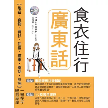 2.生活會話:句句皆實用的食、衣、住、行、日常生活會話,含:餐廳訂位、餐廳用語、購物用語、旅遊用語、問路、搭乘交通工具、電話用語…等。讓讀者可以輕鬆說出一口道地得體;廣府人真的能聽懂的標準粵語。