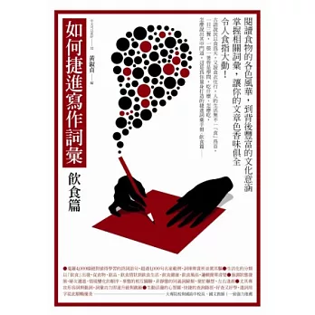 最後並輔以飲食名家範例說明,包括:袁枚、沈復、曹雪芹、張愛玲、唐魯孫、逯耀東、林文月、焦桐、朱振藩、蔡珠兒、張曼娟、韓良憶、葉怡蘭、林裕森、謝忠道、周芬伶、王浩一、徐國能……等,精選近百位名家經典例句,讀來津津有味,一次掌握詞語意義與用法,為文章注入靈魂,立即增進寫作實力。