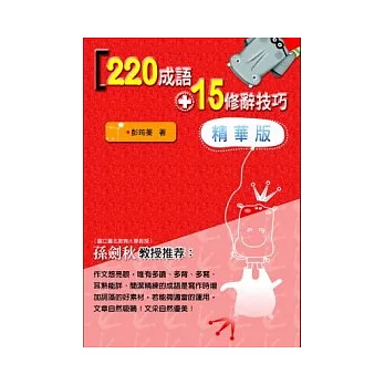 220成語+15修辭技巧限量出售![]() 還在猶豫要不要買嗎?再不買就來不及了 博客來語言學習-中文/方言分類新書上市![]() 購買[220成語+15修辭技巧]絕對物超所值 點圖即可看詳細介紹 |