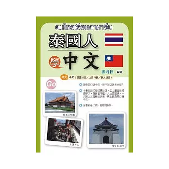 這本「泰國人學中文」附上3張CD,能讓泰國學習者更方便自學標準華語的發音,總共有46課,每一課都是日常生活中必備的實用會話,如:打招呼用語、旅遊用語、甚至購物殺價用語的會話。