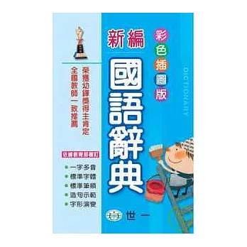 本辭典收錄近七千字,字形、字音以教育部公布的”國字標準字體”、”國語一字多音審訂表”及”常用國字標準字體筆順”為準,內容除了有造句示範外,並有配合字義、詞義的彩圖說明,一目了然。